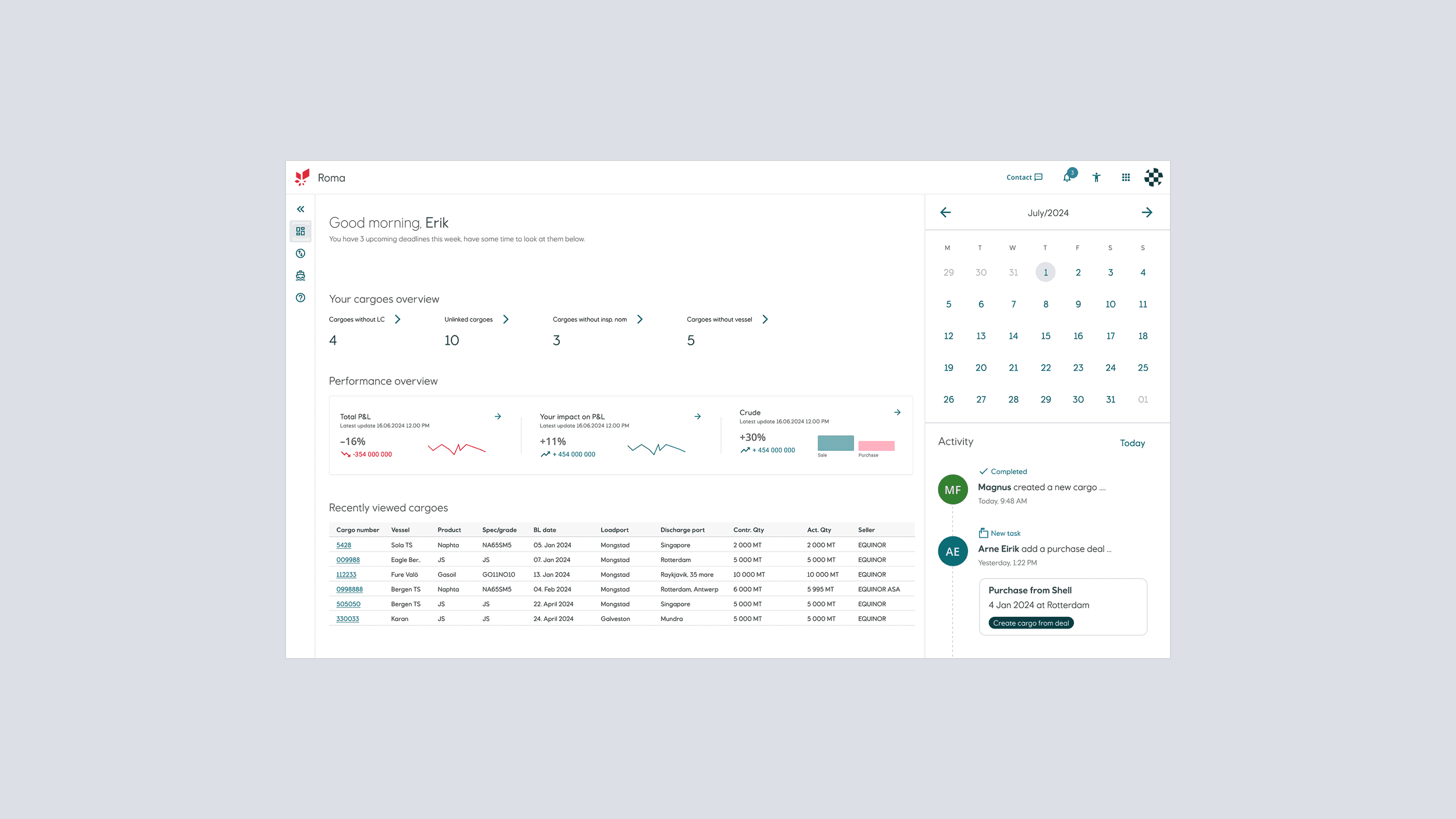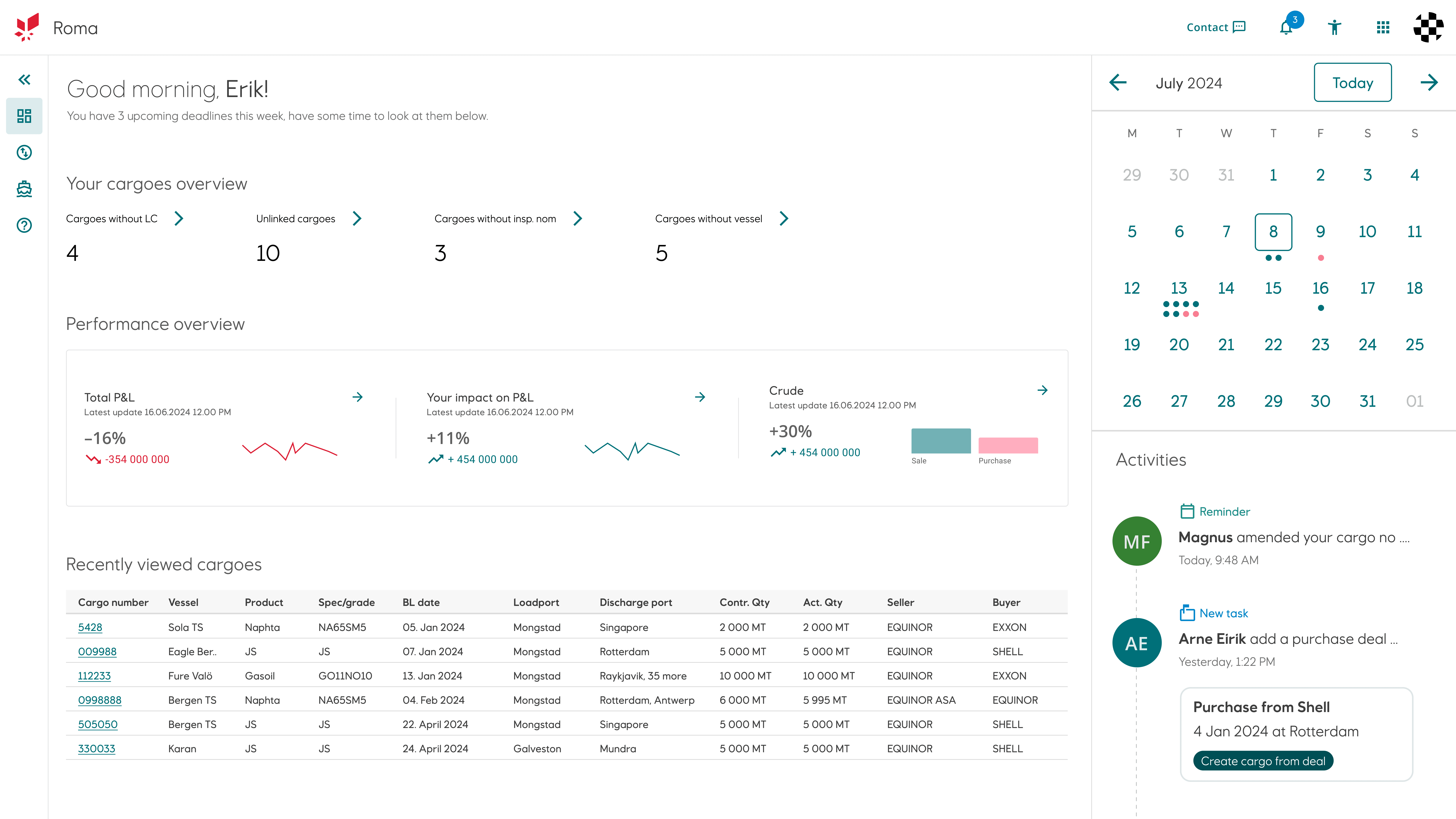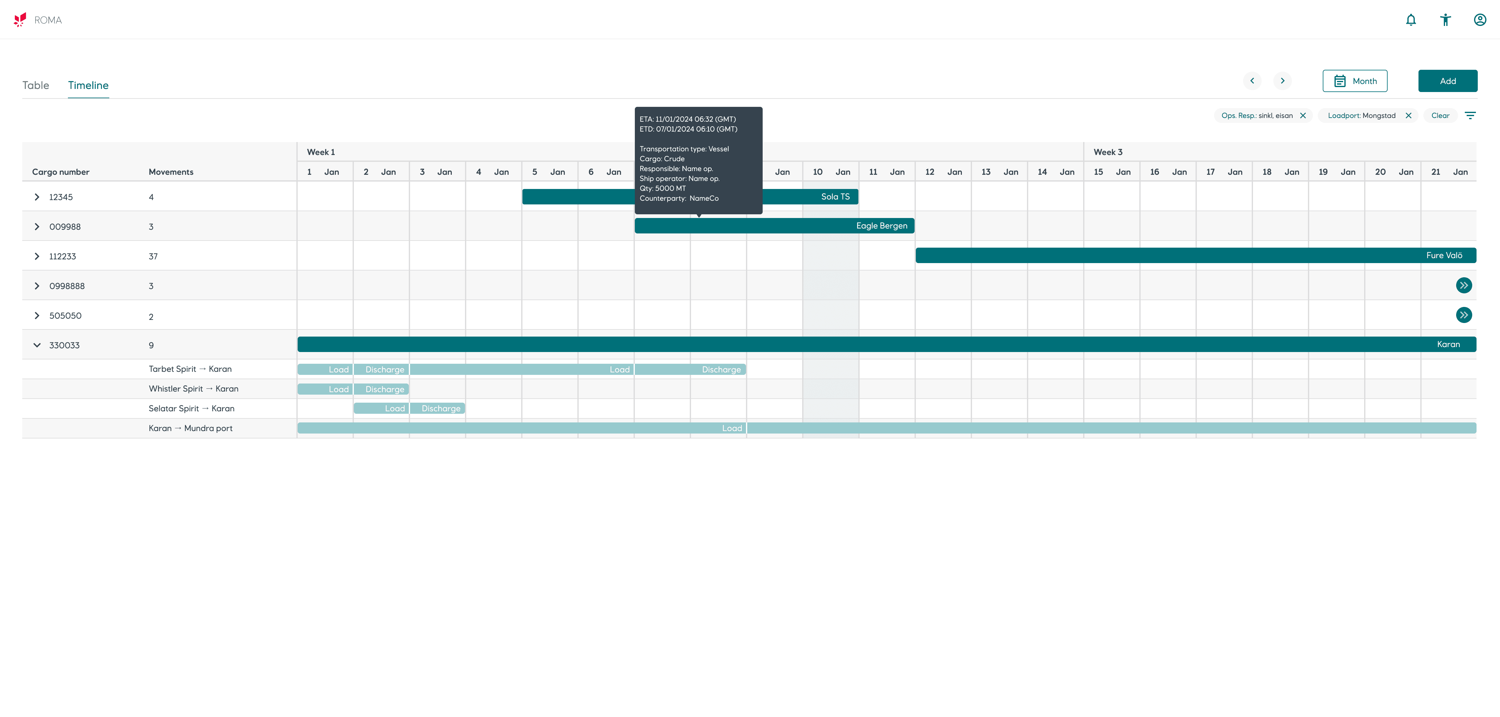 "I have been waiting for an overview like this since I joined" - Cargo operator with 10 years of experience, referring to the table/map/timeline overviews.
