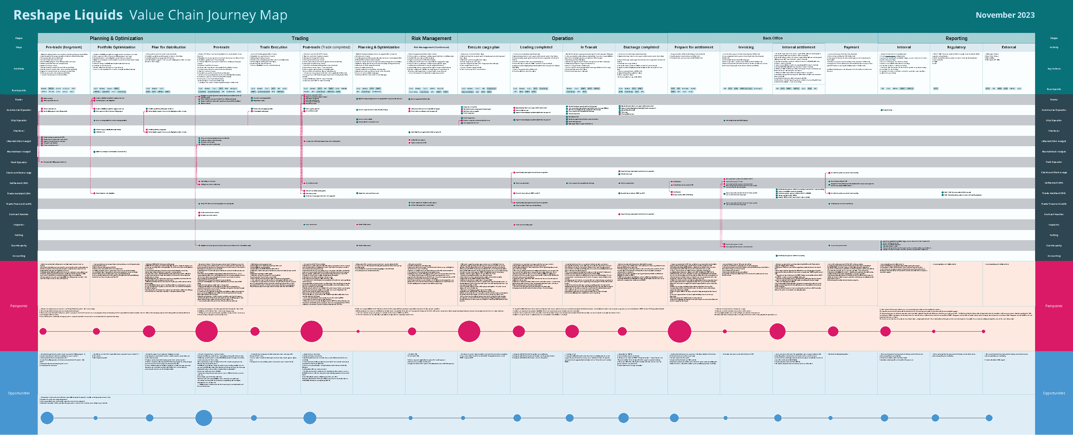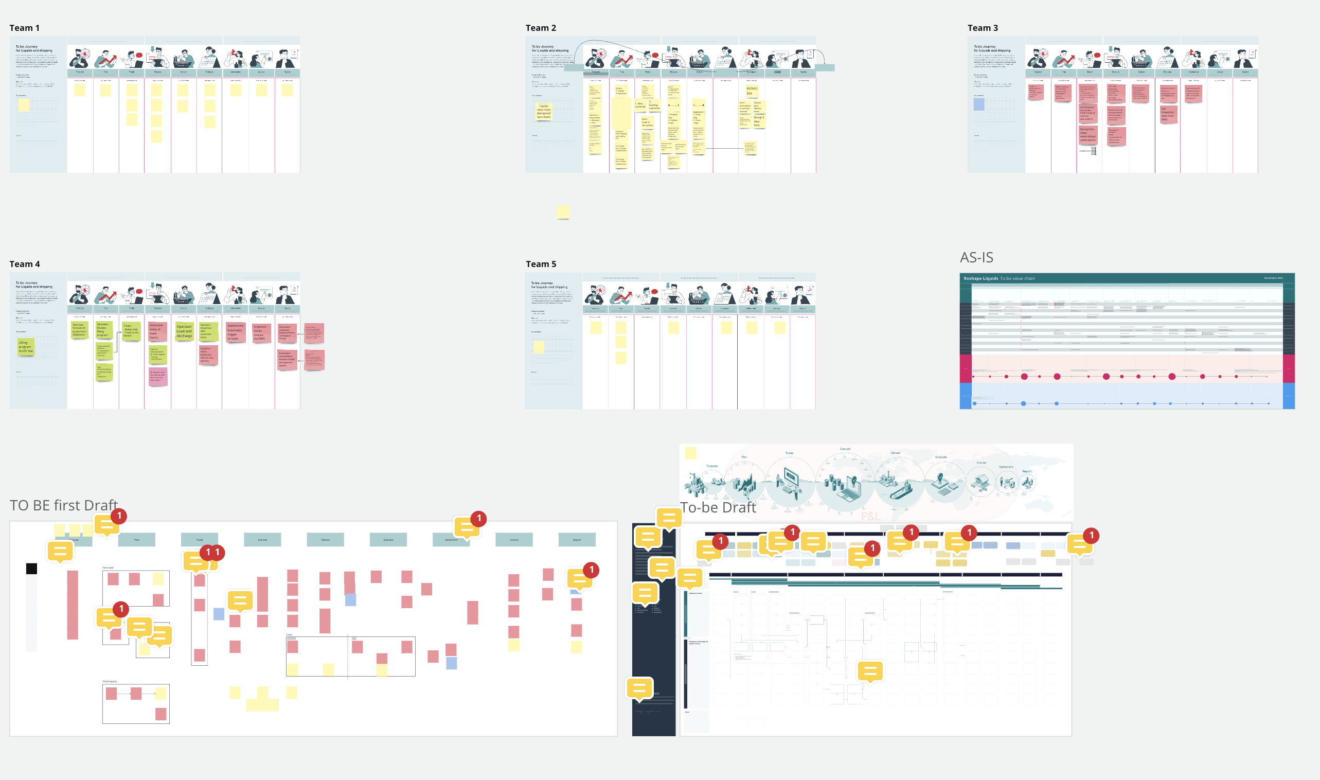 The discover kicked-off through a series of workshops to visualize the ecosystem map of the entire liquids value chain. The goal is to visualize the Boulder (Ecosystem map), followed by the Rocks and Pebbles (AS-IS Journey Map). By far the most important workshop was the journey mapping. The map was used as a facilitation tool for the interviews with employee's to capture workflows, needs, opportunities, and pain-points.