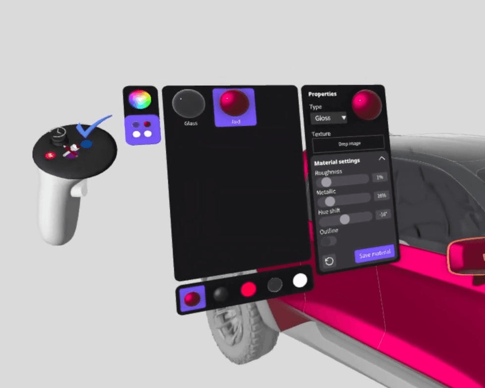 Designers at Ford, Nike, and New Balance needed better material visualisation in VR — through user feedback and workshops, we identified gaps in the entry point and needs for swatches, and save materials