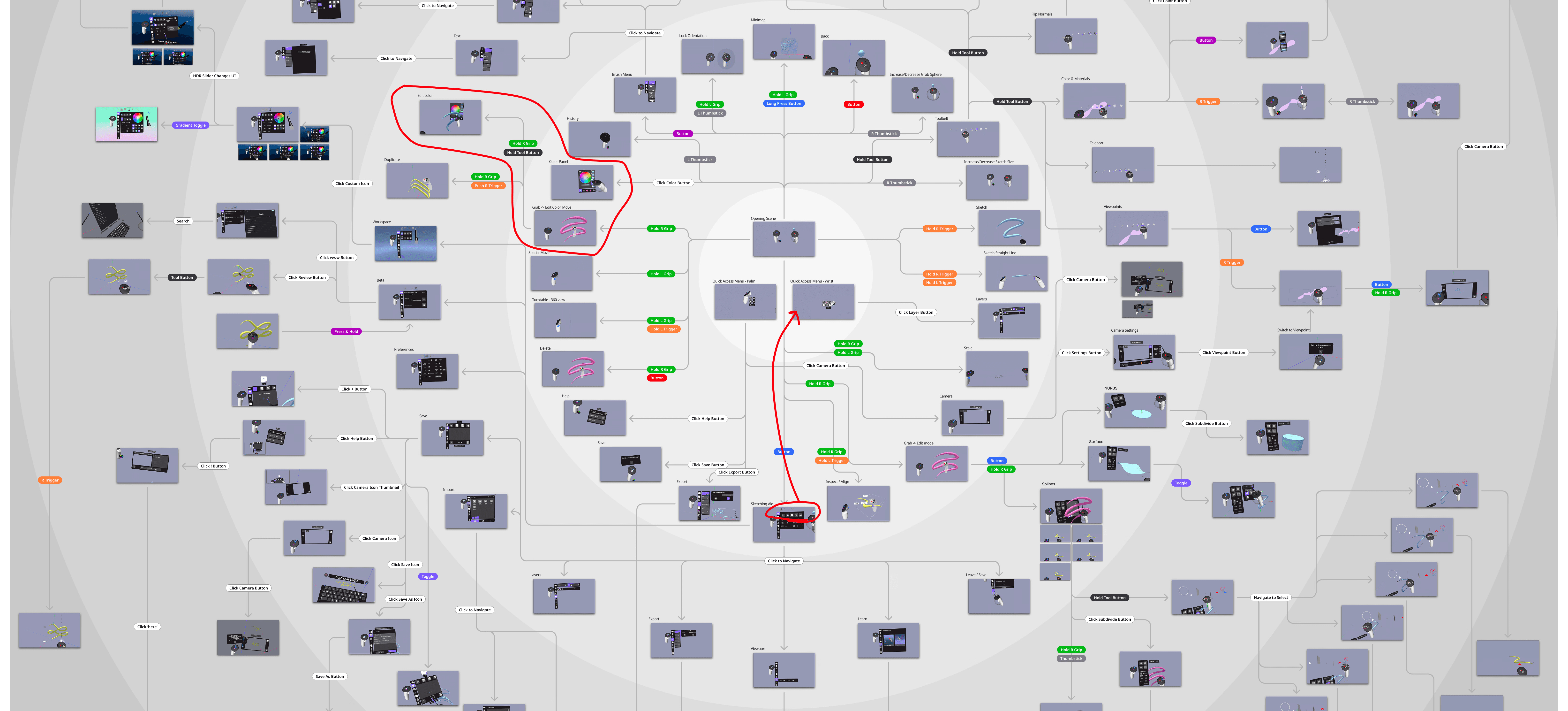 I led a comprehensive UX audit that mapped every interaction, trigger, and entry point in the app, then used those findings to design and ship three feature releases: Colors & Materials, Environments Panel, and a Quick Access Menu.