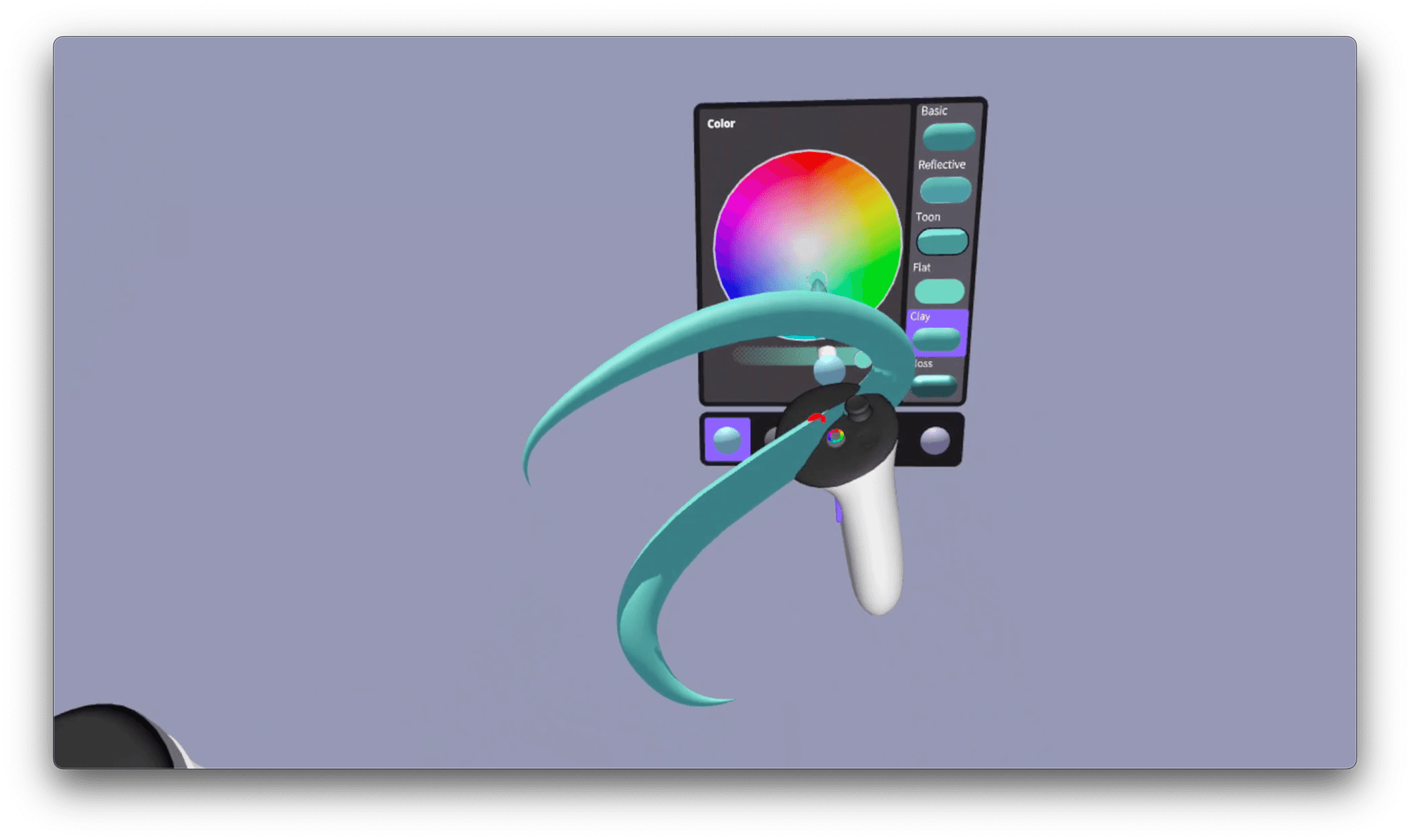 Reinforce controller patterns: off-hand trigger + color selection = 10% increment contrast level